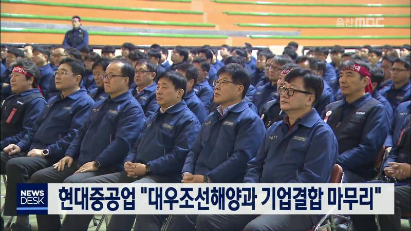 현대중공업이 올해 대우조선해양과의 기업결합을 성공적으로 마무리할 수 있도록 최선을 다하겠다고 밝혔습니다. 현대중공업 한영석·가삼현 대표이사 사장은 오늘(1/3) 열린 울산 본사 시무식에서 "대우조선해양과의 기업결합에 대해 현재 국내·외에서 심사가 진행 중"이라며, 이같이 강조했습니다. 현대중공업은 올해 매출...