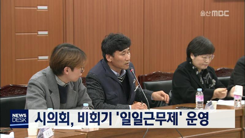 울산시의회가 비회기 동안 의원 일일근무제를 운영하며 민원을 수렴합니다. 첫날인 오늘은 이미영 부의장이 민원인 20명을 초청해 '2020년 울산을 묻는다'를 주제로 시민과 간담회를 개최했습니다. 일일근무제는 다음달 7일까지 계속되며 시의원 21명이 하루에 1명씩 당번을 쓰며 불편·부당 민원을 접수받습니다.//