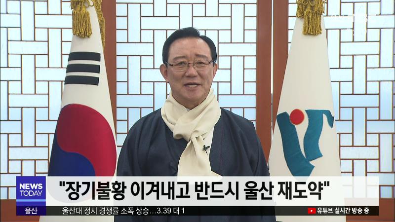 ◀ANC▶ 경자년 새해 인사를 듣는 순서, 송철호 울산시장입니다. 장기불황을 이겨내고 울산 재도약을 이뤄내겠다고 다짐했는데요, 들어보시겠습니다. ◀END▶ ◀VCR▶ 사랑하고 존경하는 울산시민 여러분. 2020년 경자년 올 한해 만사형통하시고 가정과 직장에 행복이 가득하시길 진심으로 기원합니다. 시민 여러분. 항...