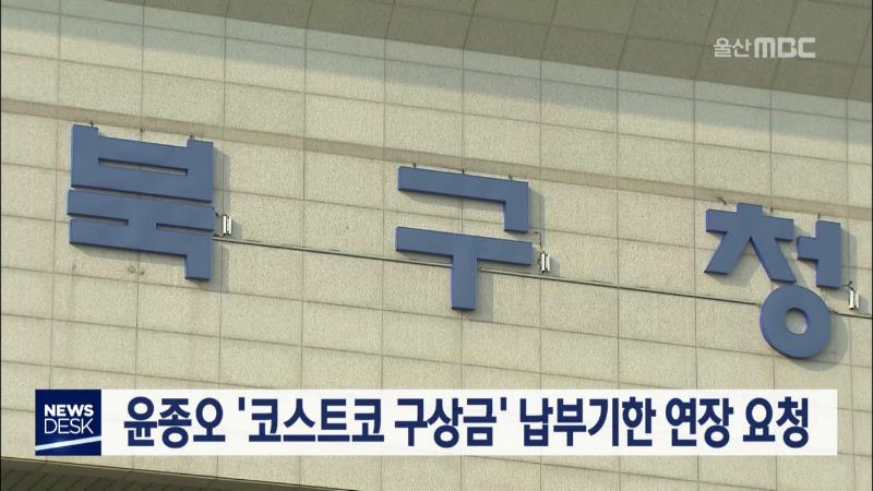 윤종오 전 북구청장 측이 코스트코 구상금 납부기한을 연장해달라고 요청했습니다. 북구청은 당초 어제(12/30) 코스트코 구상금 고지서를 발급할 예정이었지만 윤 전 구청장 측에서 모금액 저조를 이유로 내년 2월까지 연장을 요구해 발급하지 않았다고 밝혔습니다. 총 구상금은 4억 7천여만 원으로 윤 전 구청장 측이 지난...