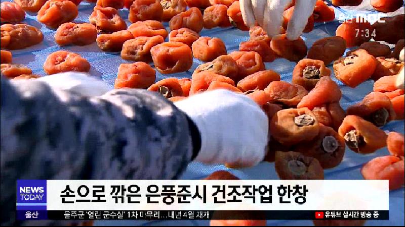 ◀ANC▶ 조선 숙종때 임금님 진상품으로 유명한 예천 은풍준시 곶감이 설 대목을 앞두고 출하작업이 한창입니다. 올해는 감 풍작으로 곶감 생산량도 평년보다 크게 늘어나 재배농가는 판매에도 분주한 모습입니다. 안동 조동진 기자의 보도입니다. ◀END▶ ◀VCR▶ 해발 4백미터 예천군 은풍면 동사리 마을! 따사로운 겨...