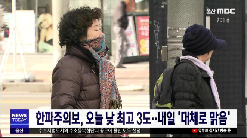 오늘 한파주의보, 낮 최고 3도..내일 대체로 맑음