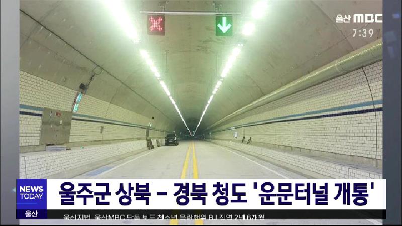 울산시 울주군과 경상북도 청도는 잇는 '운문터널'이 4년 공사 끝에 완공됐습니다. 지난 2015년 11월 착공한 이 공사에는 427억원이 투입됐으며, 터널 길이는 1.87km입니다. 운문령 고갯길을 넘어가는 기존 도로는 폭이 협소하고 경사가 심해 사고 위험이 높았고, 특히 눈이 많이 오면 교통 전면 통제로 불편이 컸습니다. /...