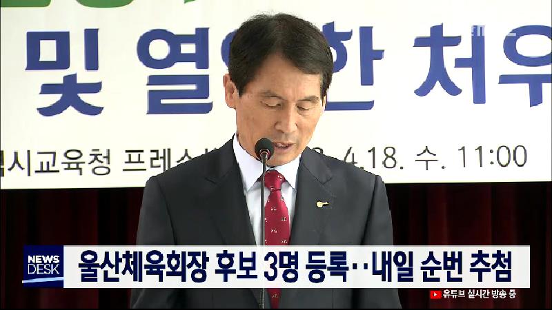 울산체육회장 후보 3명 등록..내일 순번 추첨