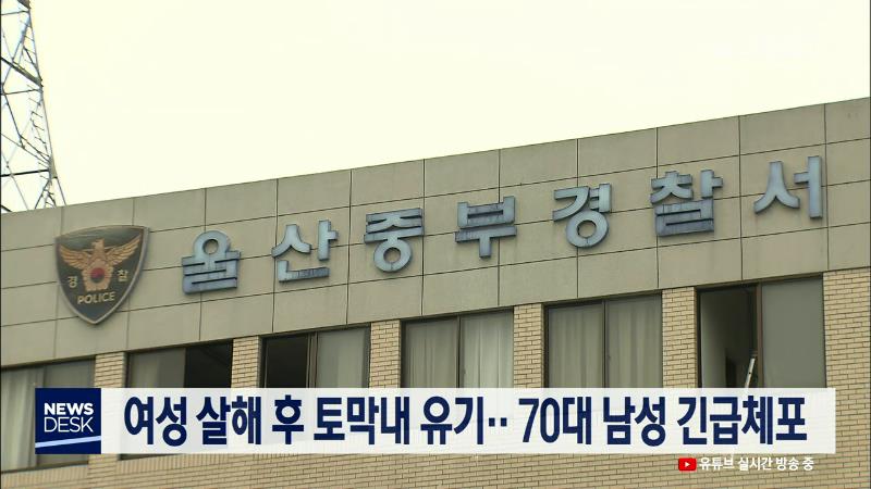 울산중부경찰서는 오늘(12/28) 오전 50대 여성을 살해한 뒤 시신을 토막 내 유기한 혐의로 70대 남성을 긴급 체포해 조사하고 있습니다. 지난 20일 남편의 실종 신고를 접수 받은 경찰은 이 여성이 평소 알고 지내던 70대 남성의 집으로 간 뒤 행적이 끊겼고, 이 남성이 종이상자를 들고 나오는 모습을 확인하고 수색을 벌...