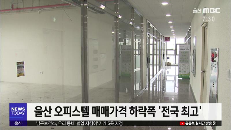 ◀ANC▶ 울산의 오피스텔 매매가격 하락폭이 전국에서 가장 큰 것으로 나타났습니다. 정제마진 악화가 장기화되며 정유업계의 4분기 실적도 어두울 것이라는 전망이 나오고 있습니다. 경제브리핑, 김문희 기자입니다. ◀END▶ ◀VCR▶ 전국적으로 오피스텔 가격이 상승세를 보이고 있지만 울산은 전국 최고의 가격 하락...