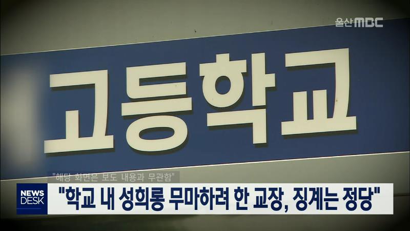 울산지방법원 제1행정부는 울산의 모 고등학교 교장 A씨가 울산시교육감을 상대로 견책 처분을 취소해 달라며 낸 소송을 기각했습니다. A교장은 지난해 학교에서 발생한 교사 간 성희롱 사건을 처리하는 과정에서 피해자의 가족에게 사건을 무마해 달라고 부탁하거나, 피해자에게 성고충심의위원회를 열지 말아달라고 요구...
