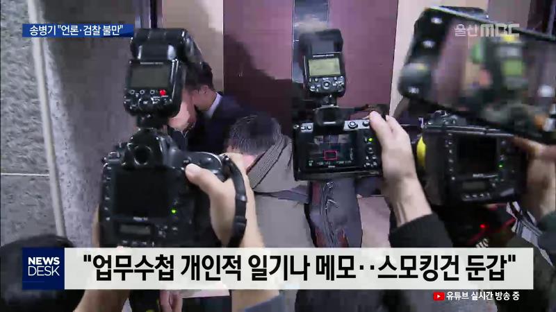 ◀ANC▶ 이번 청와대 하명수사 논란의 중심에 서 있는 송병기 경제부시장이 오늘(12/23) 기자회견을 열고 언론과 검찰 수사에 강한 불만을 표출했습니다. 자신의 메모글을 마치 결정적인 업무수첩처럼 보도했고, 검찰을 향해서는 불법 도청과 수사기록 유출 의혹까지 제기했습니다. 최지호 기자. ◀END▶ ◀VCR▶ 청원경...