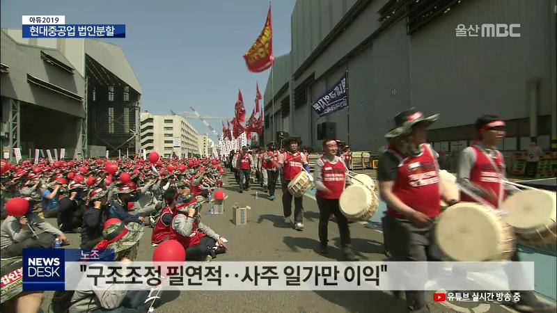 ◀ANC▶ 울산MBC는 이번 한 주 동안 2019년 한 해를 돌아보는 '아듀 2019'를 마련했습니다. 오늘은 첫 번째로 올한해 울산을 강타한 현대중공업 법인분할 소식입니다. 지난 상반기 지역사회와 경제계의 최대 관심사였고, 지금까지도 갈등과 후유증이 계속되고 있는데요. 이 사태의 전말을 정리해 봅니다. 유희정 기자. ◀E...