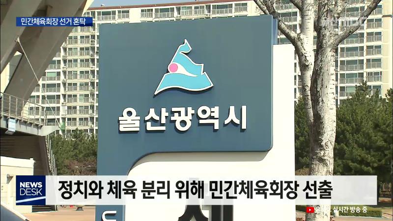 ◀ANC▶ 울주군 체육회장 선거를 시작으로 울산시와 각 구,군 체육회가 첫 민선회장 선거 절차에 들어갔습니다. 각 구군 체육회장 후보는 추대 가능성이 높지만 울산시 체육회장 선거는 3파전 양상을 띠며 벌써부터 경쟁이 뜨겁습니다. 그런데 선거운동이 시작되지도 않았는데, 정치색에 금품선거 이야기까지 흘러나오고 ...