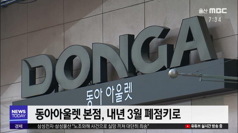 ◀ANC▶ 대구 중구에 있던 옛 동아백화점 본점이 47년 만에 문을 닫습니다. 10년 전 대기업에 팔렸다가 이마저 매출 부진으로 결국 내년 3월 문을 닫게 됐는데, 향토 백화점 명맥이 끊기는 것 아니냐는 말까지 나옵니다. 대구 한태연 기자가 보도합니다. ◀END▶ ◀VCR▶ 대구 동성로 북편에 자리 잡은 동아아울렛 본점...