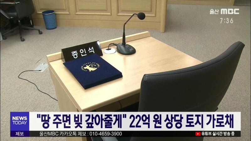 울산지법 형사11부 박주영 부장판사는 땅 소유권을 주면 대신 빚을 갚아주겠다고 속여 22억원 상당의 토지를 가로챈 혐의로 재판에 넘겨진 63살 A씨에게 징역 2년을 선고했습니다. A씨는 지난 2013년 10월 경주에 땅이 있는 지인 B씨에게 접근해 땅 소유권을 이전등기해주면 대출을 받아 13억5천만 원의 채무를 대신 갚고, ...