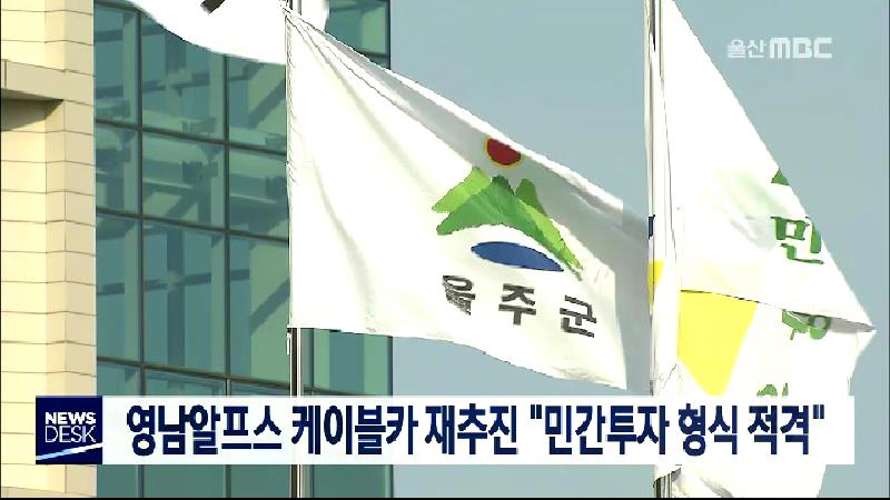 울주군이 영남알프스 케이블카 사업을 민간투자 형식으로 다시 추진합니다. 울주군은 케이블카 사업에 대한 민자 적격성을 분석한 결과 정부와 지자체가 추진하는 것보다 30억 원 가량 비용을 절감할 수 있고 수익률 등의 경제성도 있는 것으로 나타났다고 밝혔습니다. 영남알프스 케이블카 사업은 노선 설계 등을 놓고 환...