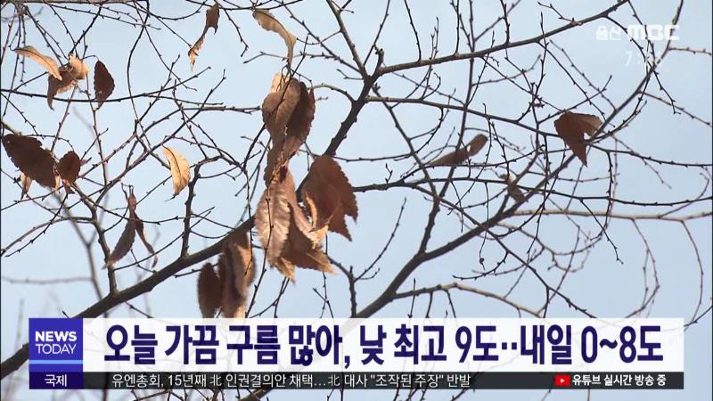 오늘 가끔 구름 많아, 낮 최고 9도..내일 0~8도