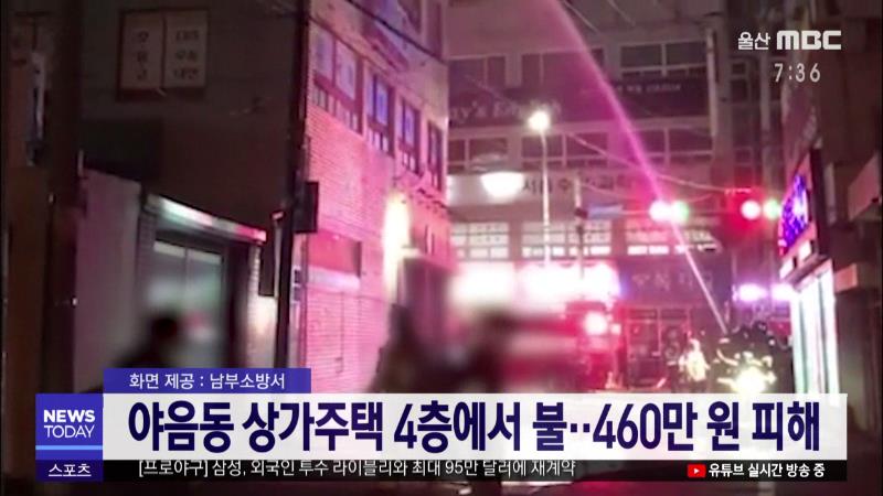 야음동 상가주택 4층에서 불..460만 원 재산 피해
