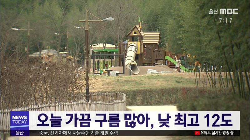 1) 평년보다 포근한 날씨가 이어지고 있습니다. 현재 울산의 기온 8도를 나타내고 있고, 한낮 기온은 12도까지 오르겠습니다. 이후 늦은 오후부터 대체로 흐리겠습니다. 오늘 늦은 오후부터 밤 사이에는 동풍의 영향으로 빗방울이 떨어지는 곳이 있겠습니다. 2) 내일은 다시 이맘때 기온으로 돌아갑니다. 내일 울산의 최저...
