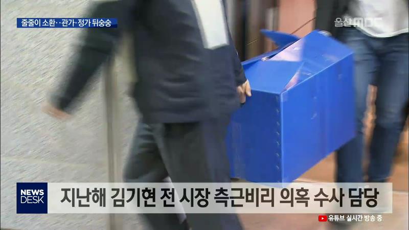 ◀ANC▶ 검찰이 김기현 전 시장의 측근비리에 대한 이른바 '하명수사' 의혹에 대한 수사 강도를 높이고 있습니다. 측근비리 의혹을 수사했던 경찰관들은 물론 울산시청 공무원들까지 소환하고 있어서, 검찰 수사의 파장이 어디까지 미칠지 지역 관가와 정가 모두 긴장하고 있습니다. 유희정 기자. ◀END▶ ◀VCR▶ 서울...