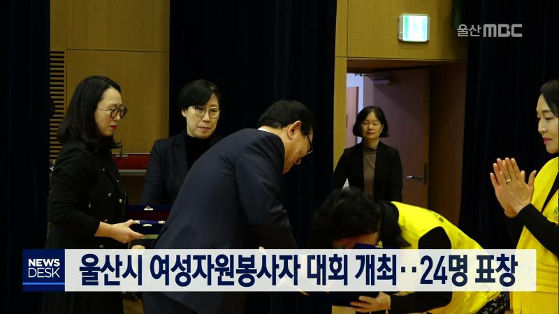 2019년 울산시 여성자원봉사자대회가 오늘(12/13) 시청 대강당에서 열렸습니다. 이 자리에서 중구 복산1동 여성자원봉사회 김막출 씨와 남구 대현동 서가야 씨 등 24명이 울산시장 표창 등을 받았습니다. 지난 1998년 창립한 울산시 여성자원봉사회는 현재 회원이 2천여 명으로, 무료급식과 푸드뱅크, 소년소녀가정 밑반찬...