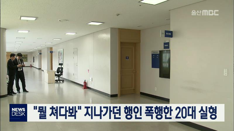울산지법 제4형사단독 김정석 판사는 함께 놀던 여성과 귀가 문제로 실랑이를 벌이다 자신을 쳐다본다는 이유로 행인을 폭행한 24살 A씨에게 징역 8개월을 선고했습니다. A씨는 올해 1월 남구의 한 노래방 건물 계단에서 지인인 여성과 귀가 문제로 실랑이를 벌이다 지나가던 B씨가 자신을 쳐다본다는 이유로 욕설을 하며 ...