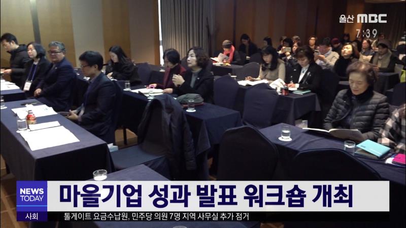2019년 마을기업 성과 발표 워크숍이 오늘(12/4) 롯데시티호텔에서 열렸습니다. 이번 워크숍에서는 26개 마을기업이 참가해 올 한해 경영 성과와 내년 목표를 발표했습니다. 마을기업은 주민 주도의 지역공동체 사업으로 울산에서 현재 45개 마을기업이 운영되고 있습니다.//
