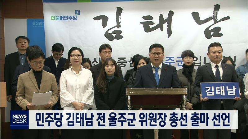 더불어민주당 울산시당 김태남 전 울주군 지역위원장이 오늘(12/4) 시의회 프레스센터에서 기자회견을 열고 울주군 총선 출마를 선언했습니다. 김 전 위원장은 울산-언양고속도로를 통행료 무료인 일반도로로 전환하고, 범서읍 입암리에 제2혁신도시를 유치하겠다고 밝혔습니다. //