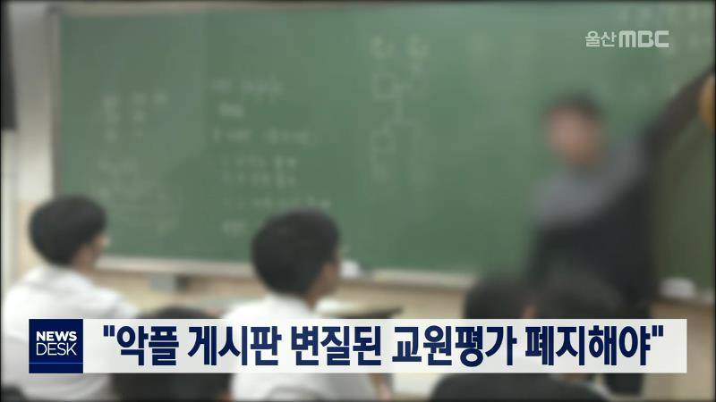 교원평가의 서술식 문항이 익명성이 보장된다는 점을 악용한 '악플' 게시판으로 변질되고 있어 폐지해야 한다는 주장이 제기됐습니다. 울산교사노동조합은 인격모독이나 명예훼손을 물론 성적 수치심을 주는 표현으로 교사들이 고통을 받고 있다며 교원평가의 순기능이 완전히 실종됐다고 주장했습니다. 이에 대해 교육청은...