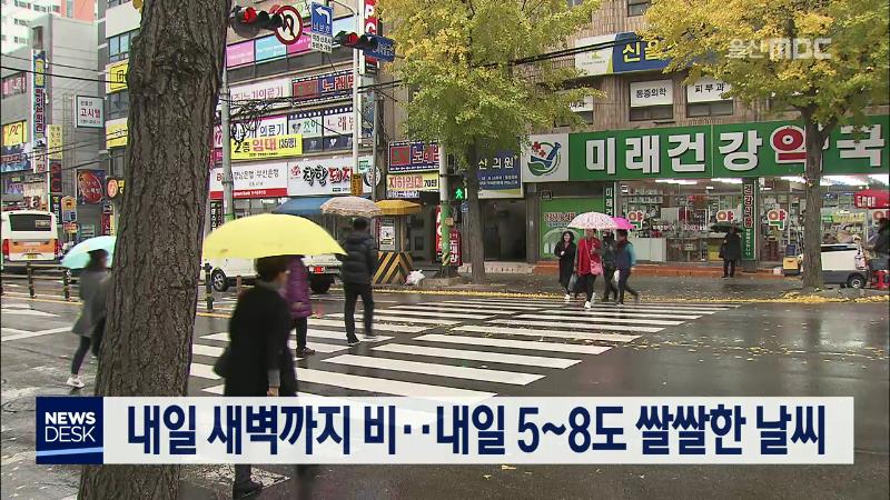 내일 새벽까지 비..내일 5~8도 쌀쌀한 날씨