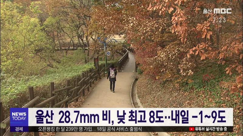 울산 강수량 28.7mm, 오늘 낮 최고 8도..내일 -1~9도