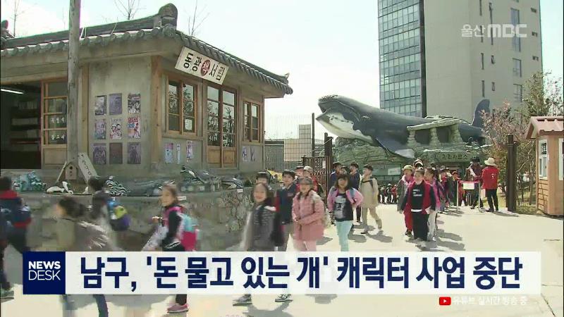 남구가 장생포의 부흥 역사를 상징하기 위해 제작한 '돈 물고 있는 개' 캐릭터 관광기념품 제작 사업을 내년 상반기 특허출원을 앞두고 중단됐습니다. 남구청은 내년도 캐릭터 공모전 예산 1천2백여만 원이 전액 삭감되며 사업이 차질을 빚게 됐다며 이같이 밝혔습니다.