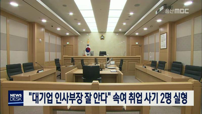 대기업에 인맥이 있다고 속여 자녀 취업을 미끼로 수천만원을 가로챈 2명에게 실형이 선고됐습니다. 울산지법은 사기 혐의로 재판에 넘겨진 67살 A씨에게 징역 2년을, 57살 B씨에게 징역 6개월을 각각 선고했습니다. 이들은 지난 2016년 "대기업 인사부장과 잘 안다며 대기업이나 공기업에 아들을 취업시켜줄 수 있다"고 속...
