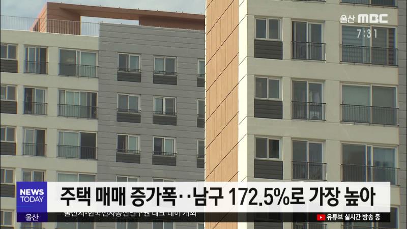 ◀ANC▶ 울산지역 주택 매매 거래량이 7개월 연속 증가한 것으로 나타났습니다. 울산지역 인구가 47개월 연속 순유출을 보였으며, 출생율은 지난해 보다 하락했습니다. 경제브리핑, 김문희 기자입니다. ◀END▶ ◀VCR▶ 울산 지역 주택 매매 거래량이 7개월 연속 증가한 가운데 지난달 남구의 매매 증가폭이 가장 컸고, ...