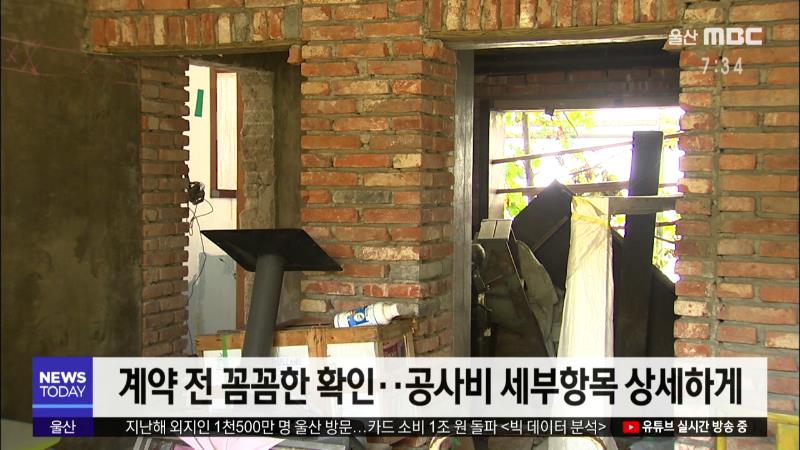◀ANC▶ 돈을 주고 건물 인테리어를 맡겼는데 약속한 기간 동안 공사가 진척되지 않거나 비용을 추가로 부담하는 등 소비자 피해 사례가 꾸준히 발생하고 있습니다. 이런 피해를 예방하기 위해선 무조건 싼 곳만 찾지 말고 계약서도 꼼꼼하게 작성해야 한다고 합니다. 대전 김광연 기자가 보도합니다. ◀END▶ ◀VCR▶ 3...