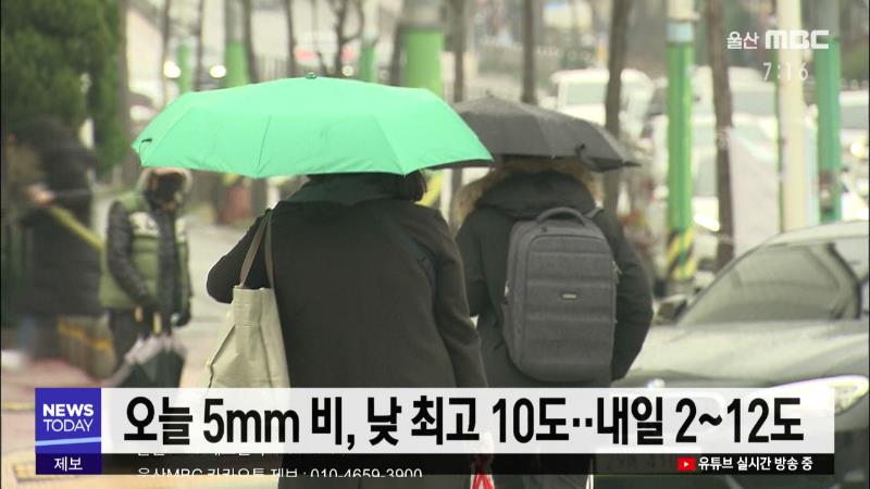 오늘 5mm 내외 비, 낮 최고 10도..내일 2~12도