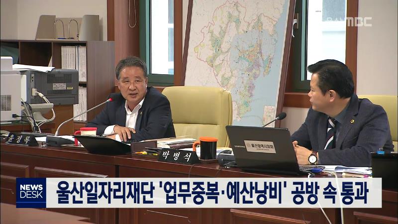 송철호 시장의 공약사업인 '울산 일자리재단' 설립 예산을 놓고 여·야 시의원 간 공방이 벌어졌습니다. 자유한국당 윤정록 의원은 일자리재단 출연금 25억2천만 원을 심사하면서, 울산시 각 부서에서 수행하는 업무와 중복된다며 재단 설립은 직원 22명을 선발하기 위한 수단이라고 비판했습니다. 이에 대해 민주당 박병석 ...