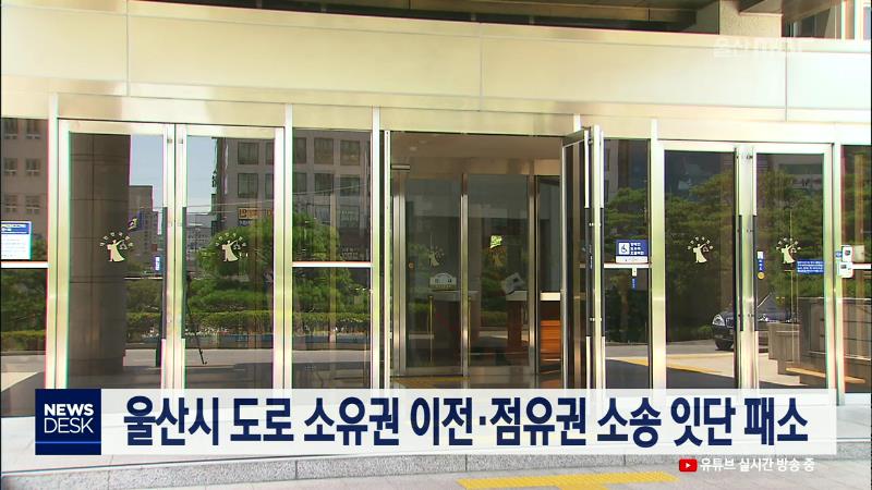 울산시가 최근 도로 소유권 이전 민사소송과 도로 점용권 소송에서 잇달아 패소했습니다. 울산시는 최근 부산고법에서 하나은행을 상대로 제기한 울산고속도로 진입도로 소유권 이전 등기 소송 항소심에서 패소한 뒤 대법원에 상고했습니다. 또 북부순환로와 삼산로 등 7개 주요 도로의 점용권을 놓고 한국농어촌공사와 벌...