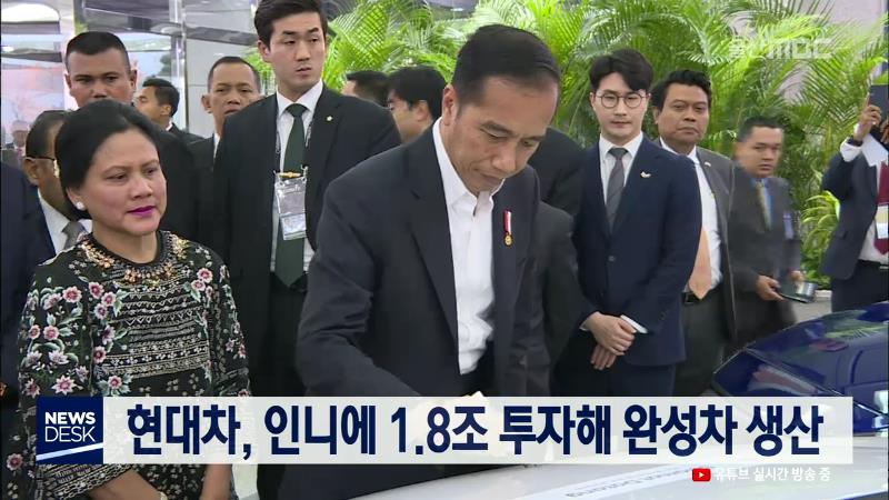 현대자동차가 인도네시아에 1조8천여 억원을 투자해 아세안 지역에는 최초로 완성차 공장을 건립합니다. 현대차는 오늘(11\/26) 울산공장에서 조코 위도도 인도네시아 대통령과 정의선 현대자동차그룹 수석부회장 등이 참석한 가운데 현대차 현지 공장 건설을 위한 투자협약을 체결했습니다. 현대차는 이번 협약을 통해 자...