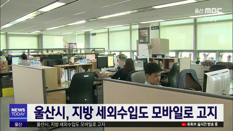 울산시는 지방세에 이어 지방세외수입도 `모바일 고지서 전자 송달 서비스`를 시행합니다. 이 서비스는 카카오톡과 네이버, 페이코 등 모바일 간편결제 앱과 시중은행 금융 앱으로 고지서를 받고 납부를 할 수 있습니다. 대상 과목은 재산 임대수입와 사용료 수입, 주정차 위반 과태료 등 입니다. \/\/
