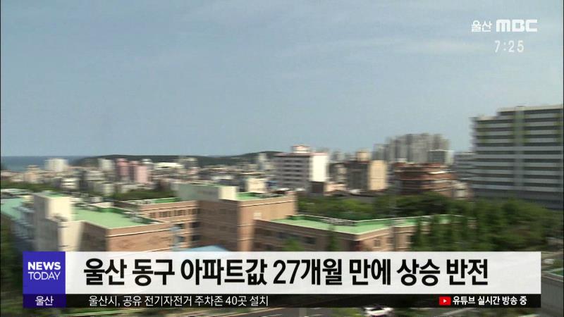 ◀ANC▶ 울산 동구의 아파트 값이 27개월만에 상승세로 돌아섰습니다. 다음달 발권되는 항공권에 한단계 낮은 유류할증료가 적용됩니다. 경제브리핑, 서하경 기자입니다. ◀END▶ ◀VCR▶ 조선업 침체로 지난 2017년 8월 말부터 하락세를 이어온 동구 지역 아파트값이 27개월 만에 상승세로 돌아섰습니다. 한국감정원이 ...