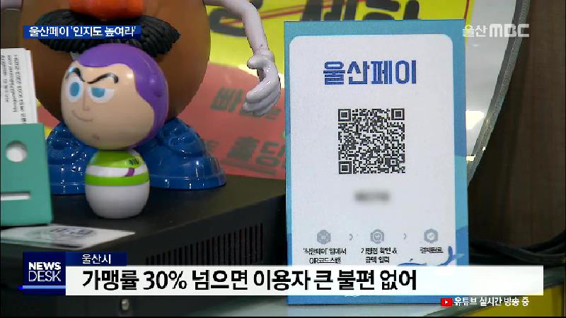 ◀ANC▶ 울산시가 울산페이 활성화를 위해 가맹점 확보에 온 힘을 쏟으면서 현재 가맹점이 6천 곳을 넘어섰는데요. 그런데 상당수 가맹점들이 울산페이로 결제를 받은 경험이 없다고 합니다. 울산페이에 대한 소비자들의 낮은 인지도를 높이는 일이 필요해 보입니다. 유영재 기자 ◀END▶ ◀VCR▶ 울산 중구의 다이어트 ...