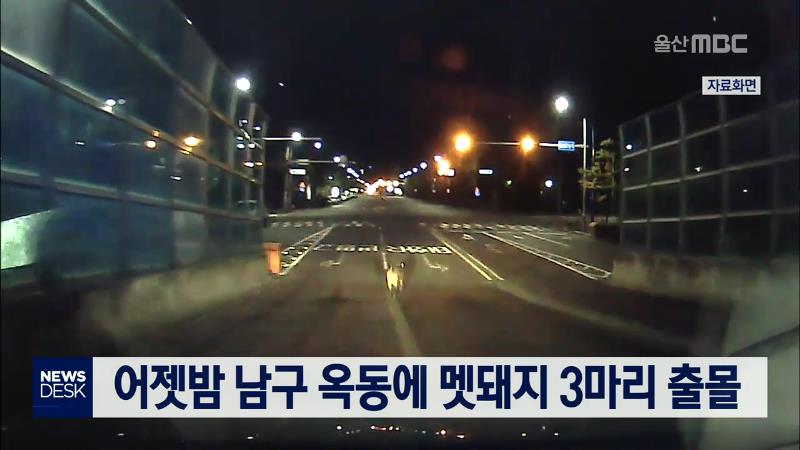 어젯밤(11\/22) 9시 30분쯤 남구 문수로 공원묘지 앞 차도에 멧돼지 3마리가 출몰했습니다. 이중 새끼 2마리는 옥동방향으로 달리던 차량과 충돌 후 그 자리에서 숨졌고, 어미 멧돼지 1마리는 대치 끝에 엽사가 쏜 실탄을 맞고 사살됐습니다. 남구는 죽은 멧돼지 시료를 채취해 아프리카돼지열병과 연관성이 있는지 확인을 ...