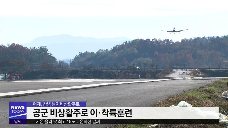 ◀ANC▶ 전쟁이 나거나 군사작전을 펼칠 때, 김해공항이나 사천공항을 이용하기 힘들면 어떻게 할까요? 이에 대비해 전국의 5곳에 비상활주로가 있는데, 공군이 경남의 유일한 비상활주로인 창녕에서 전투기 이*착륙훈련을 열었습니다. 경남 김태석 기자 ◀VCR▶ 창녕에 있는 공군의 남지비상활주로. 국산 기본훈련기인 K...