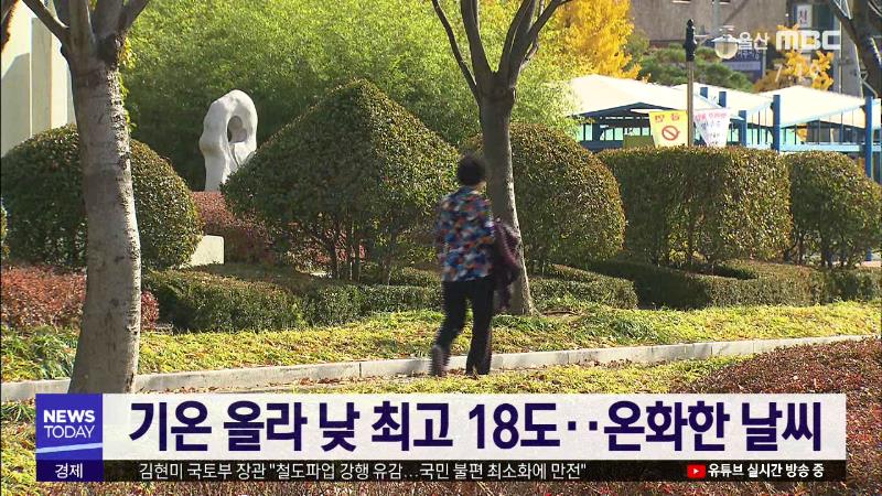 절기상 소설인 오늘(11\/22) 울산지방은 구름 많다 낮부터 차차 맑아지겠고 아침 최저 6도 낮 최고 18도로 평년보다 기온이 올라 포근한 날씨를 보이겠습니다. 주말인 내일도 고기압의 가장자리에 들어 맑겠고 9도에서 19도의 기온 분포로 오늘보다 더 기온 오르며 야외활동하기 좋겠습니다. 울산기상대는 일요일인 모레는 ...
