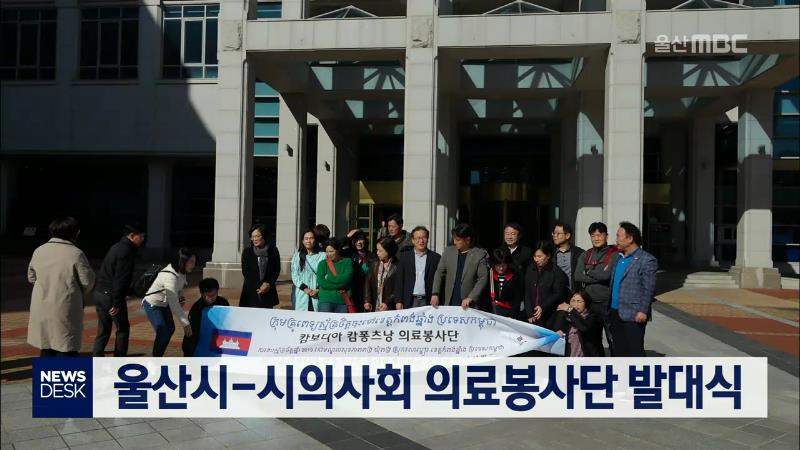 울산시와 울산시의사회가 공동으로 구성한 캄보디아 의료봉사단 발대식이 오늘(11\/21) 시청에서 열렸습니다. 의료봉사단은 8개 진료 과목 전문의 등 23명으로 구성됐습니다. 봉사단은 오는 25일까지 3박 5일간, 캄보디아 프놈펜 북쪽으로 80킬로미터 떨어진 캄퐁츠낭에서 의료봉사활동을 펼칩니다. \/\/
