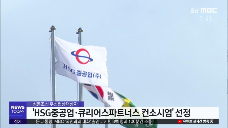 ◀ANC▶ 성동조선해양이 회생절차에 들어간 지 2년여만에 인수 후보자를 찾았습니다. 성동조선의 인수합병이 성공적으로 마무리되면 국내 중소조선사들에 대한 구조조정이 속도를 낼 것으로 예상됩니다. 경남 부정석 기잡니다. ◀VCR▶ 'HSG중공업과 큐리어스파트너스 컨소시엄'이 성동조선 우선협상대상자로 선정됐습니...