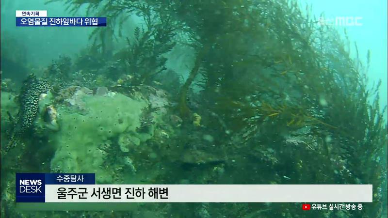 ◀ANC▶ 온산공단 앞바다의 실태를 고발하는 연속보도 오늘은 두번째로 온산앞바다와 맞닿은 진하해수욕장 주변 바닷속을 들여다 봤습니다. 아직은 생태계를 유지하고 있지만 어민들은 언제 오염될 지 모른다며 애를 태웠습니다. 서하경 기자입니다. ◀END▶ ◀VCR▶ 울산을 대표하는 해수욕장인 진하해수욕장을 품에 안...