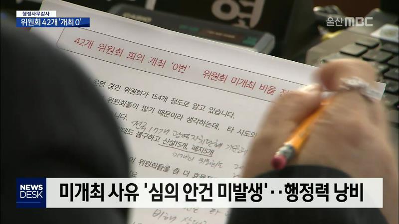 ◀ANC▶ 오늘(11\/18) 열린 시의회 행정사무감사에서는 한 번도 열리지 않은 위원회가 전국에서 가장 많아 유명무실하다는 지적이 나왔습니다. 또 저출산 대책 예산을 쏟아붓고 있지만, 해마다 출생아 수는 감소해 인구 정책에 대한 질타가 이어졌습니다. 최지호 기자. ◀END▶ ◀VCR▶ 울산시가 조례와 규칙에 따라 설...