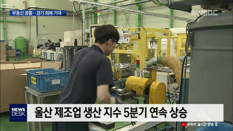 ◀ANC▶ 지난 3분기 울산 지역 부동산과 소비지수가 여섯 분기만에 상승세로 돌아섰습니다. 제조업 생산지수도 5분기 연속 상승하며 지역 경제가 서서히 회복되는 것 아니냐는 기대감이 높아지고 있습니다. 이돈욱 기자입니다. ◀END▶ ◀VCR▶ 지난 3분기 울산지역 제조업 생산지수가 지난해 동기 대비 0.7% 증가했습니...
