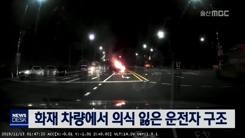 화재 차량에서 의식 잃은 운전자 구조