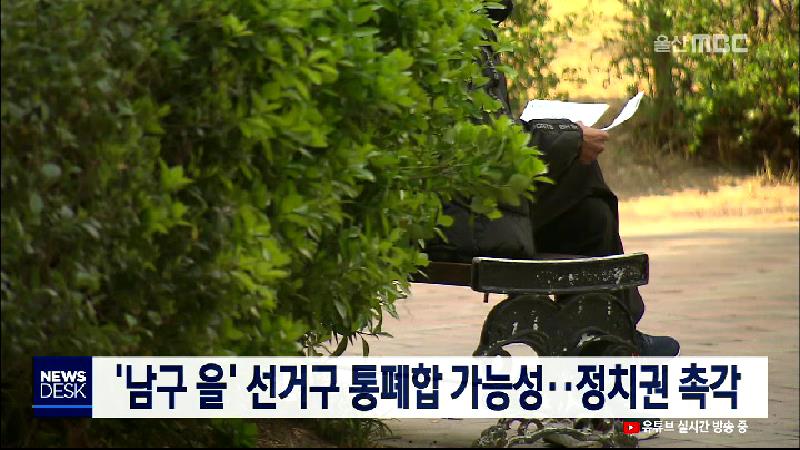 내년 총선에서 남구 갑과 을 선거구가 통폐합 가능성이 있어 울산 정치권이 촉각을 곤두세우고 있습니다. 공직선거법 개정안이 원안대로 통과되면 남구 을 지역구는 1월말 현재 인구가 지역구 인구수 하한선에 1,090명이 모자라는 15만2천470명이어서 통폐합 대상입니다. 다만 남구 갑과 을 선거구를 일부 조정하면 지역구 ...