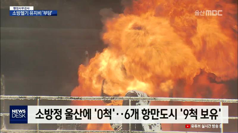 ◀ANC▶ 울산시의회는 오늘(11\/14) 소방본부에 대한 행정사무감사에서 소방헬기와 소방정 등 특수장비에 대한 예산문제를 집중 거론했습니다. 또 화재 진압 차량 출동시간이 골든타임 5분을 넘기는 것을 질타했습니다. 최지호 기자. ◀END▶ ◀VCR▶ 인명구조와 산불진화에 투입되는 소방헬기는 20년 전인 지난 2000년 ...